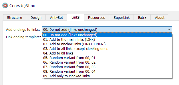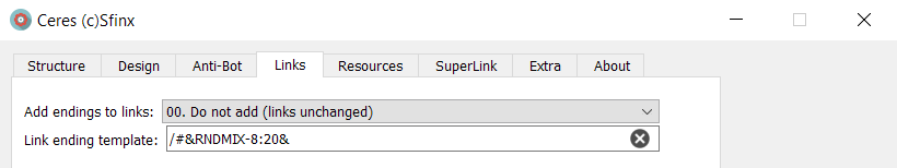 - The ability to pseudo-randomize external links in PDFs by adding various endings to them has been added. For example, anchor constructions of the form “#asgf423s”. Endings can be specified as a template with support for a number of macros (date, time, random numbers, and arbitrarily generated strings). There are 9 options to choose from for this feature.